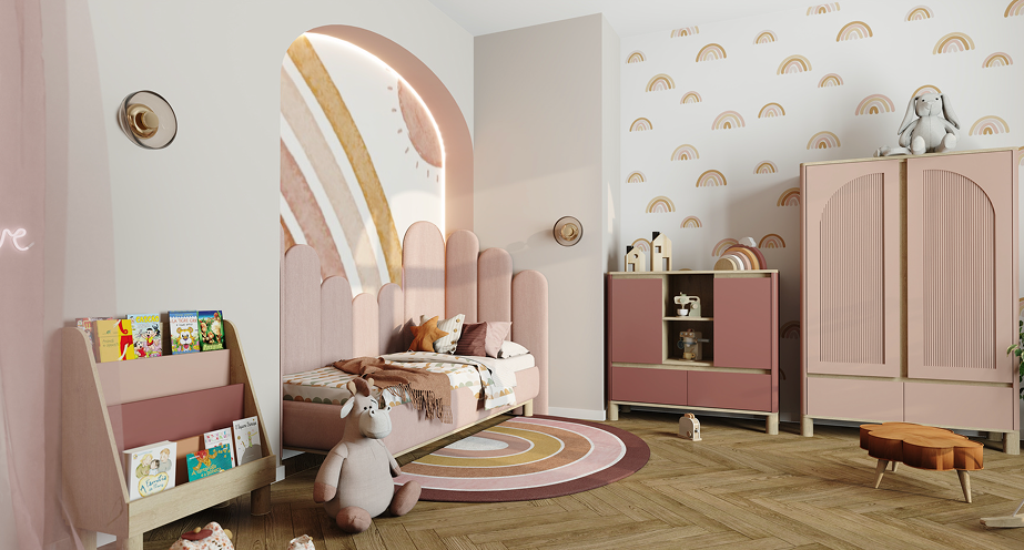 Oferujemy wygodne i estetyczne meble dla dzieci powyżej 4 lat. Łączymy pastelowe kolory, matowe powierzchnie i naturalne drewno, by stworzyć wnętrze pełne radości i ciepła.